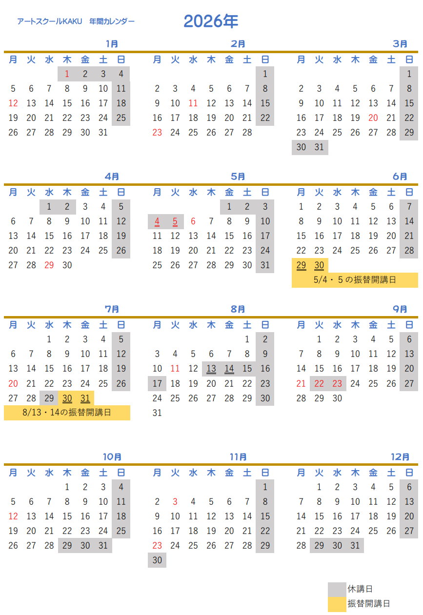 なるべく祝日を休講にしておりますが、やむを得ず変更になる場合もありますのでご了承ください。
